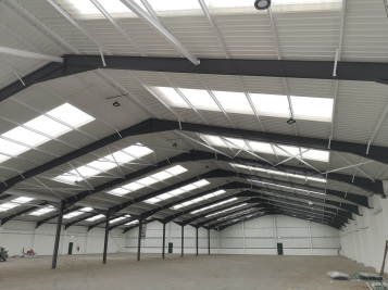 This exisitng building has had its 2500m2 roof stripped of asbestos and a new double skin built up metal roof fitted with 20% GRP roof lights.