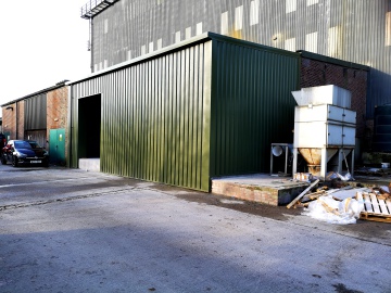 Just finished in time for christmas a New extension built up of a steel frame and double skin cladding in olive green with 10% GRP roof lights. our client now has double the working/ storage space they had before.