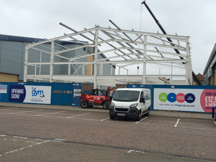 we have also completed a canopy enclosure fixing our new frame to the existing steelwork and cladding in single skin olive green.